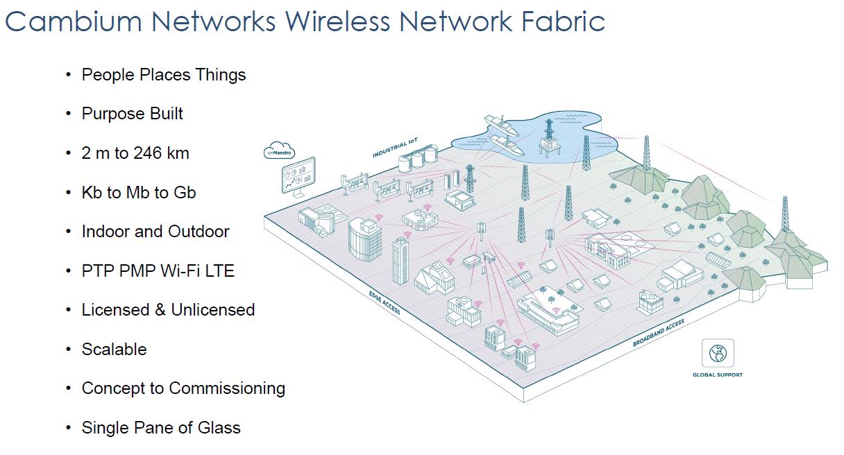 Como parte de su crecimiento en el área de telecomunicaciones, RC Caribe SA de CV incorpora a su portafolio de productos la comercialización de equipamiento de cambium networks, destinado a las redes inalámbricas y proveedores wisp. Aunado a eso, se brinda el diseño de dichas redes para soluciones wifi y wlan en cualquier ámbito que así se requiera. cambium networks es líder mundial en soluciones de este tipo, abarcando todos los entornos donde se puede aplicar su tecnología.